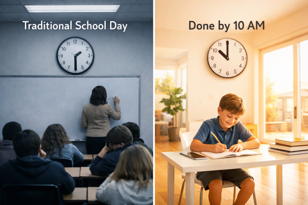 The traditional model was built for a different era. Same lesson. Same pace. Same timeline for everyone. Move on when the calendar says so, whether you got it or not.